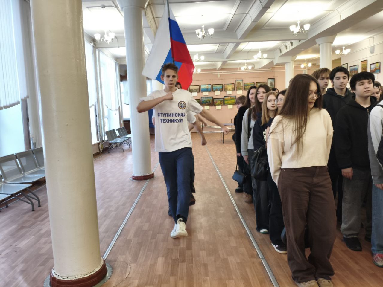 Новая учебная неделя в техникуме началась с линейки, выноса государственного флага Российской федерации и исполнения гимна.